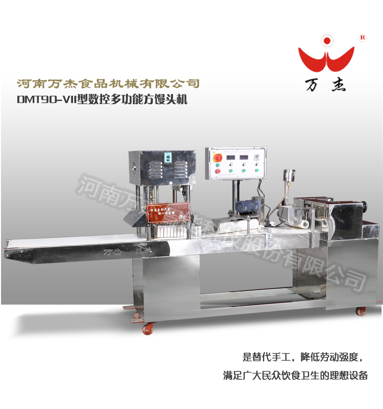 DMT90-VII系列數控多功能方形饅頭成型機廣泛適用于速凍面食加工廠,主要用來生產刀切饅頭及花色點心。
